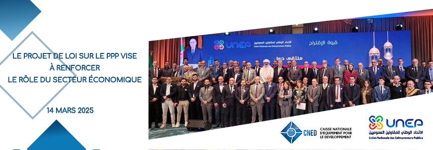 Le Directeur Général de la Caisse Nationale d’Equipement pour le Développement (CNED), Mohamed Salim Telidji, a participé le vendredi 14 mars 2025 à une rencontre organisée par l’Union Nationale des Entrepreneurs Publics (UNEP), placée sous le thème « Le rôle de l'entreprise dans l'émergence de l'économie algérienne ».