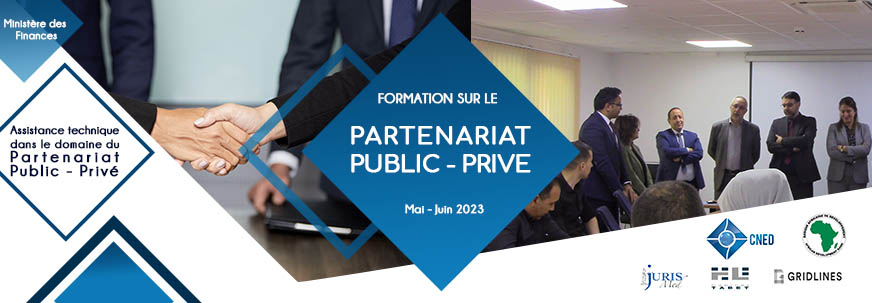 Organisées avec la collaboration de la CNED, ces sessions de formations ont été dispensées par des experts représentant le groupement de cabinets Jurismed (Tunisie) - Tabet (Algérie) - Gridlines (Royaume Uni). Elles constituent la quatrième et dernière mission de ce groupement de cabinets, chargé de la fourniture de prestations au titre du projet d’assistance technique dans le domaine du PPP, pris en charge par un don de la Banque Africaine de Développement (BAD).